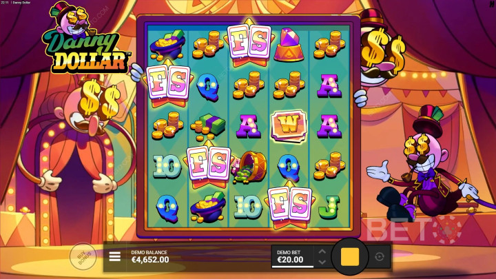 Danny Dollar tarafından Hacksaw Gaming19 ödeme çizgisine sahip 5 makaralı, 5 sıralı bir slottur. 1930'ların vodvil dünyasında geçen oyunda Danny, bakiyenizi ciddi şekilde artırabilecek numaralar yapar. Ana cazibe merkezi, yukarı doğru fırlayan ve 200x'e ulaşan Çarpanlarla Vahşi Dolar Çarklarına dönüşen Genişleyen Jokerlerdir.